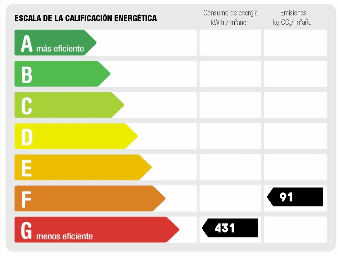 - Consumo de energía (kwh/m2 año): 432.